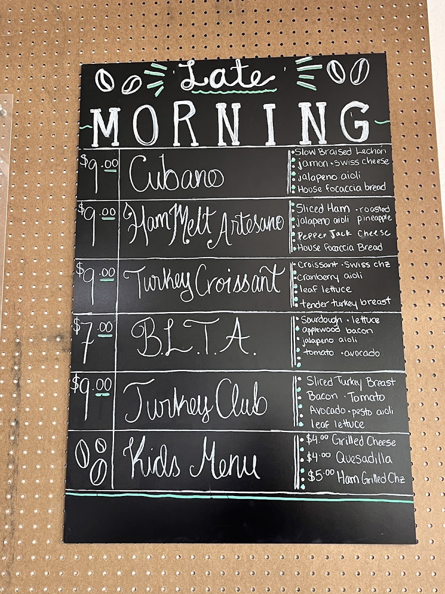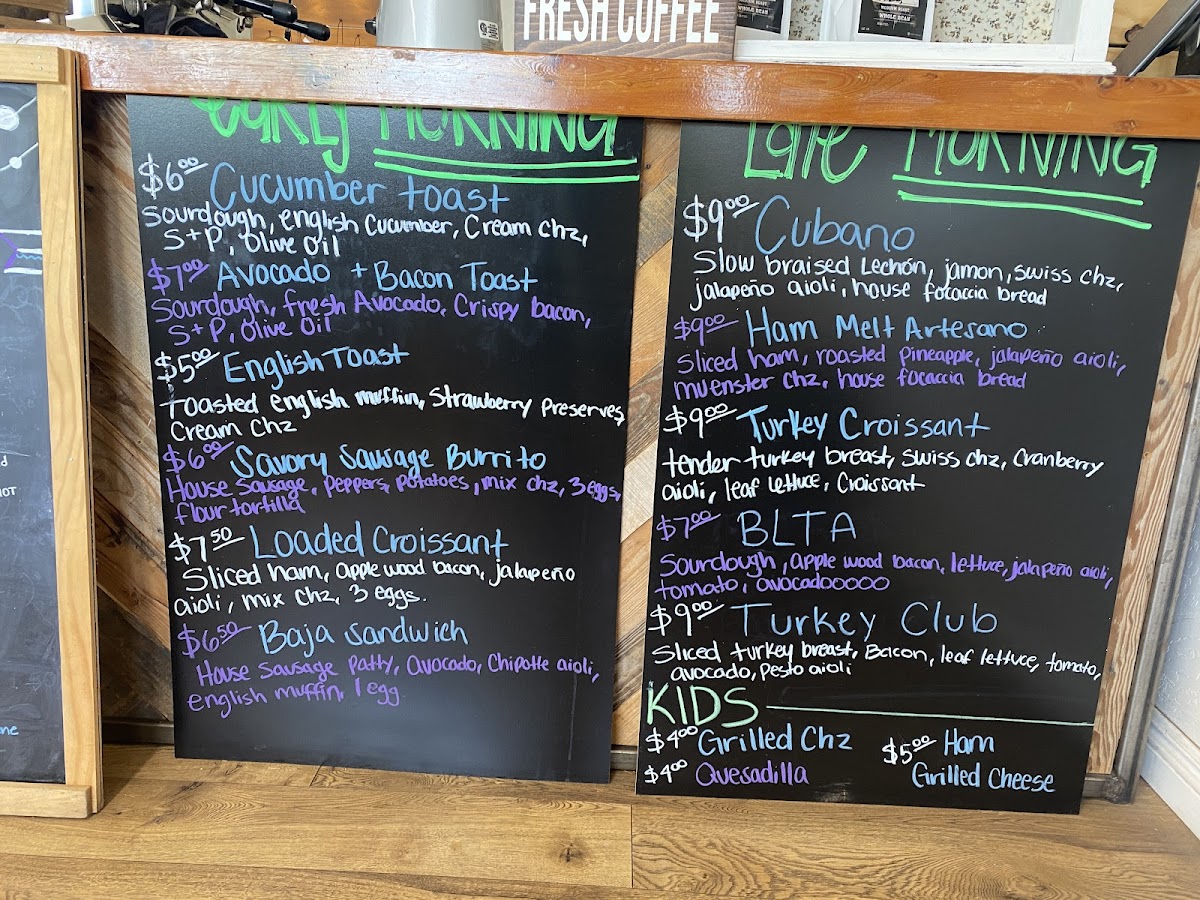 Bacon, sliced ham, scrambled eggs, mixed cheese and jalapeno aioli on a toasted croissant.